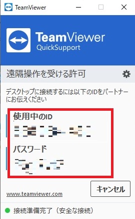 あなたのパソコン画面に、「使用中のID」と「パスワード」の数字が表示されます。